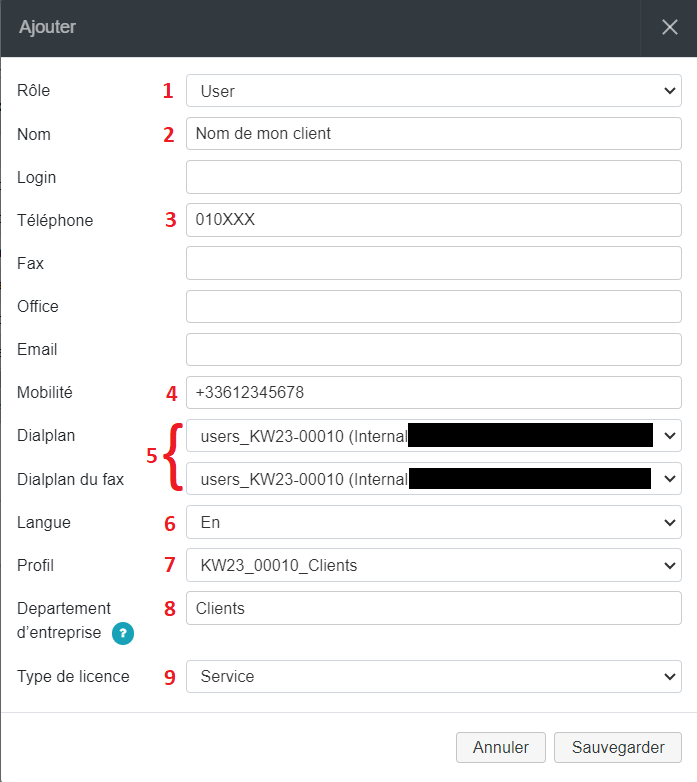 - Dialplan & Dialplan du fax : Sélectionner dans la liste