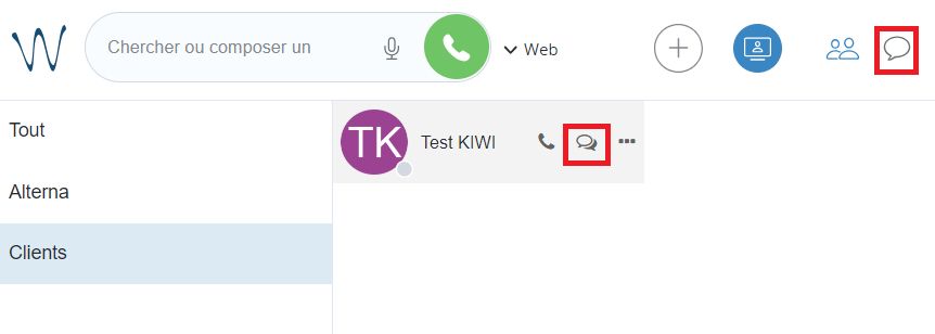 1. Rechercher votre interlocuteur, par son nom ou son numéro de mobile. Si vous êtes passé par une conversation déjà existante, ce champ est prérempli