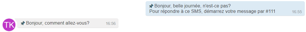 Si votre interlocuteur vous répond en débutant son message par #YYY, où YYY est votre numéro d'extension, vous recevrez son message par mail.