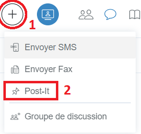 • Pour un nouveau contact, cliquer sur + dans le menu supérieur, puis Post-It