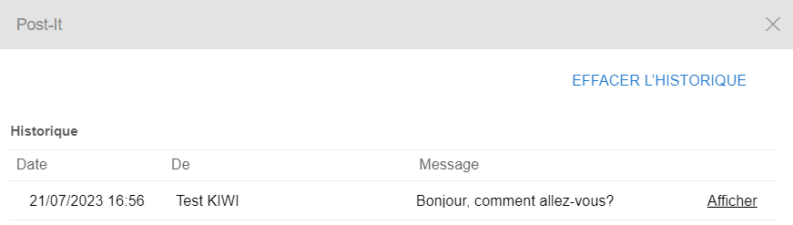 3. Si besoin, pour retrouver tous les post-it reçus, ouvrir l'historique des post-it.