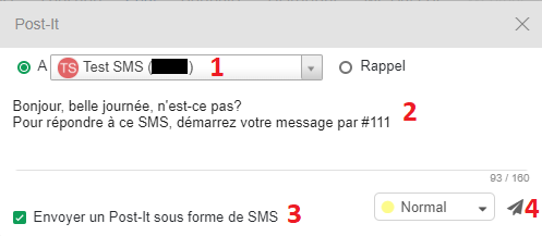 3. Cocher Envoyer un Post-It sous forme de SMS, sans quoi votre interlocuteur ne recevra jamais le message
