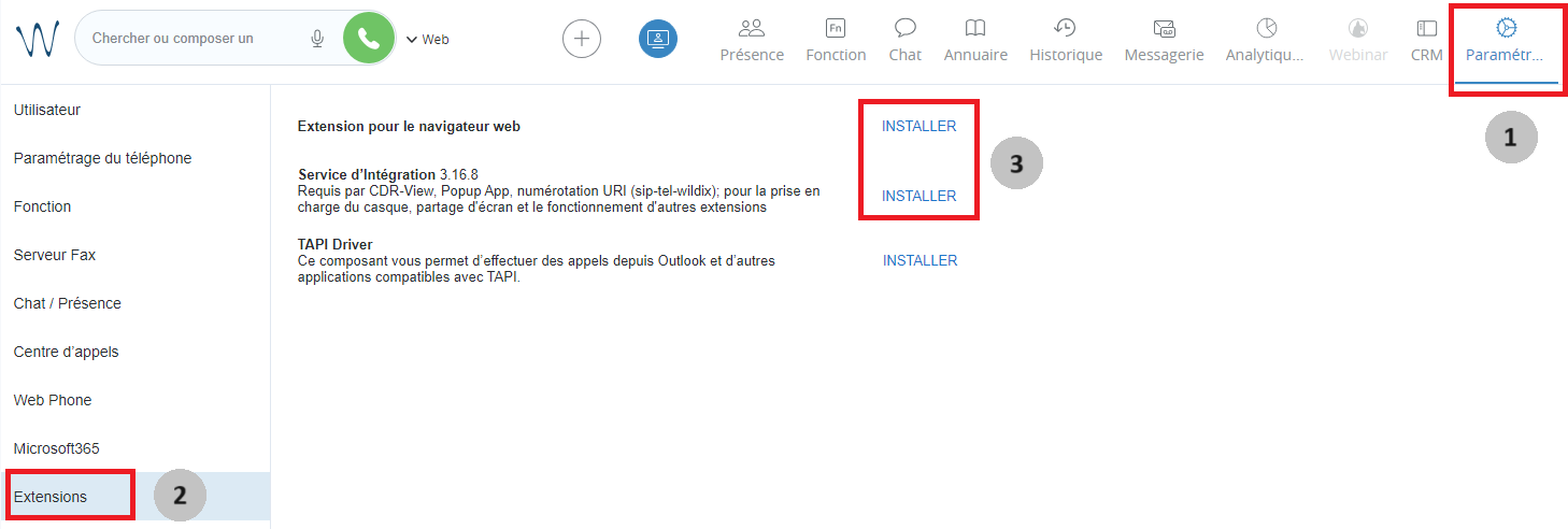 Afin de permettre à votre navigateur internet1 de lancer les appels depuis des liens Click2Call, nous vous conseillons d'installer l'Extension pour le navigateur web ainsi que le Service d'intégration en suivant les étapes ci-dessous :