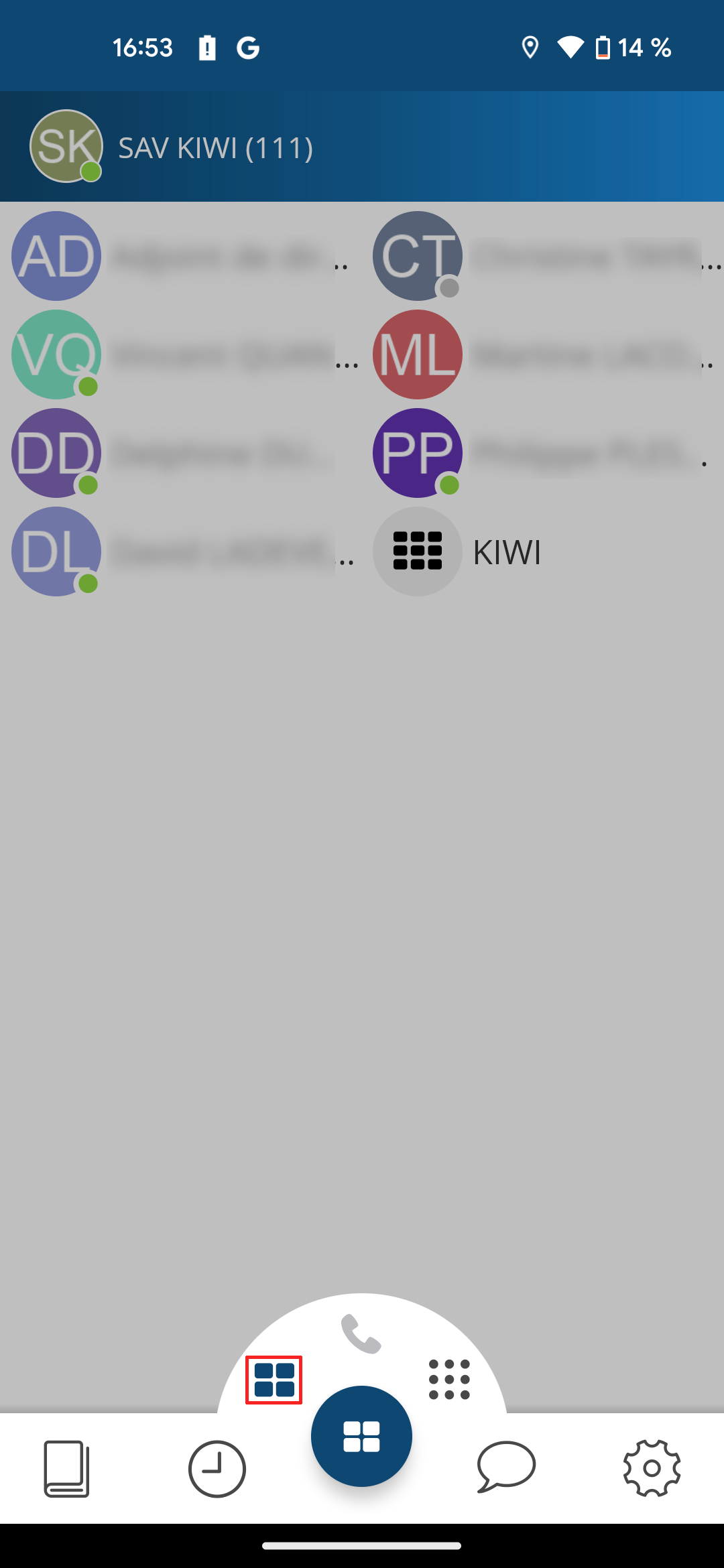- Appuyer dessus pour vous connecter aux groupes d'appel en tant qu'utilisateur dynamique sur les téléphones de bureau. Pris en charge sur WorkForce, WelcomeConsole.